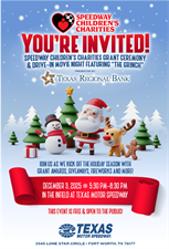 Join us as we kick of the season of giving at the Speedway Children’s Charities Grant Ceremony presented by Texas Regional Bank! This event is FREE and open to the public as we celebrate 37 incredible organizations who support local kids in need.